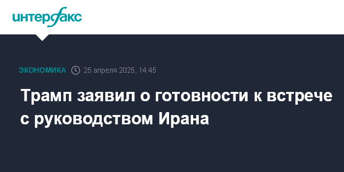 Москва. 25 апреля. INTERFAX.RU - Президент США Дональд Трамп выразил готовность встретиться с представителями высшего руководства Ирана.