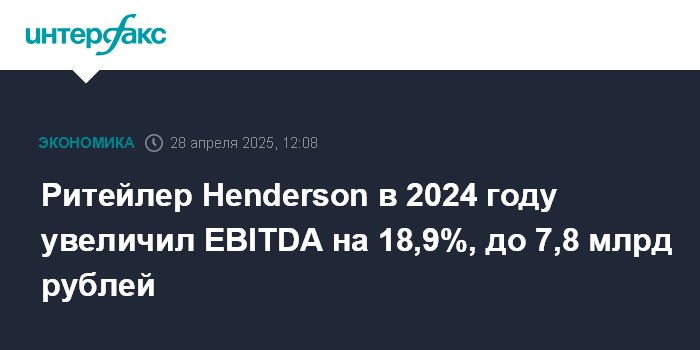Москва. 28 апреля. INTERFAX.RU - Ритейлер мужской одежды и обуви в РФ Henderson (ПАО "Хэндерсон Фэшн Групп") по итогам 2024 года увеличил EBITDA по МСФО 16 на 18,9%, до 7,8 млрд рублей, говорится в сообщении компании.