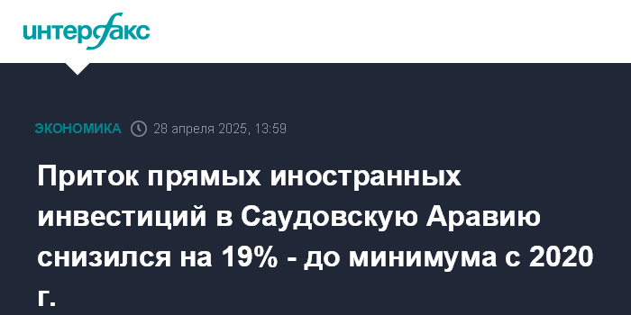 Приток прямых иностранных инвестиций в Саудовскую Аравию снизился на 19% - до минимума с 2020 г.
