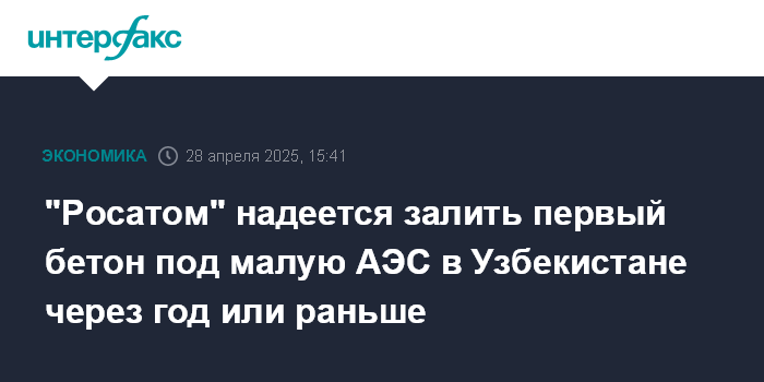 Москва. 28 апреля. INTERFAX.RU - Госкорпорация "Росатом" рассчитывает через год или раньше залить бетон под малую АЭС в Узбекистане, сообщил журналистам в Ташкенте глава компании Алексей Лихачев.