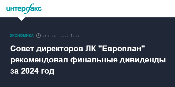 Совет директоров ЛК "Европлан" рекомендовал финальные дивиденды за 2024 год
