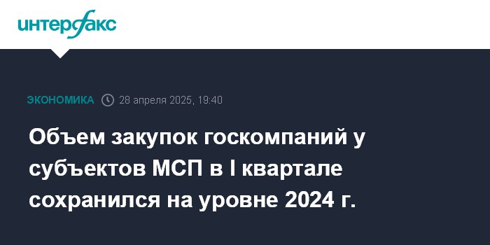 Объем закупок госкомпаний у субъектов МСП в I квартале сохранился на уровне 2024 г.