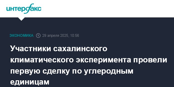 Москва. 29 апреля. INTERFAX.RU - Региональные участники сахалинского углеродного эксперимента провели первую сделку по купле-продаже единиц выполнения квоты выбросов парниковых газов, сообщает пресс-служба Минэкономразвития РФ.