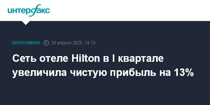 Москва. 29 апреля. INTERFAX.RU - Американская гостиничная сеть Hilton Worldwide Holdings в первом квартале 2025 года увеличила чистую прибыль на 13%, при этом показатель в расчете на акцию и выручка оказались слабее прогнозов аналитиков.