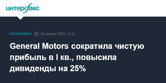 Москва. 29 апреля. INTERFAX.RU - Американский автопроизводитель General Motors сократил чистую прибыль в первом квартале 2025 года, однако увеличил выручку сильнее прогнозов рынка.