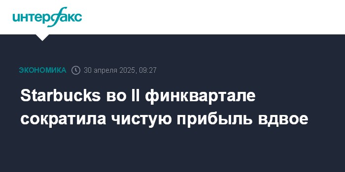 Москва. 30 апреля. INTERFAX.RU - Американская Starbucks Corp., владеющая крупнейшей в мире сетью кофеен, зафиксировала падение чистой прибыли во втором финансовом квартале в два раза, а рост выручки не оправдал ожиданий рынка.