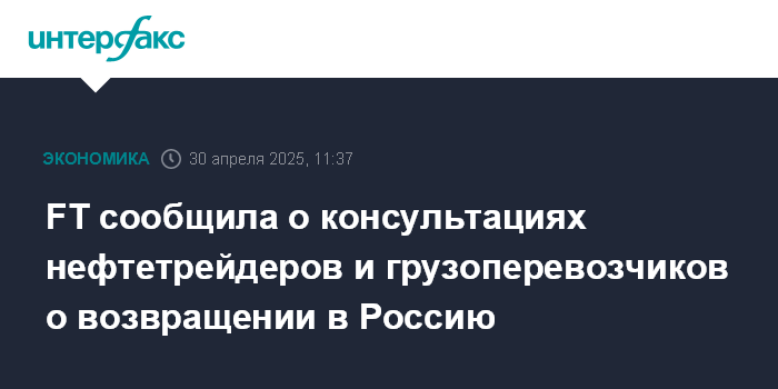 FT сообщила о консультациях нефтетрейдеров и грузоперевозчиков о возвращении в Россию