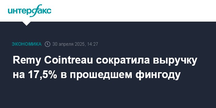 Москва. 30 апреля. INTERFAX.RU - Французский производитель алкогольной продукции Remy Cointreau SA снизил выручку в 2024-2025 финансовом году на 17,5%, в том числе из-за сокращения продаж коньяка.