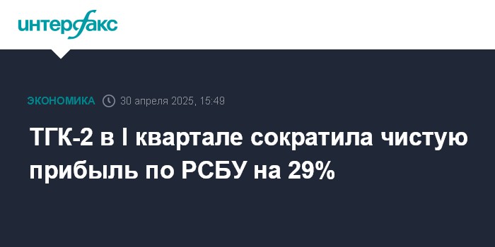 ТГК-2 в I квартале сократила чистую прибыль по РСБУ на 29%