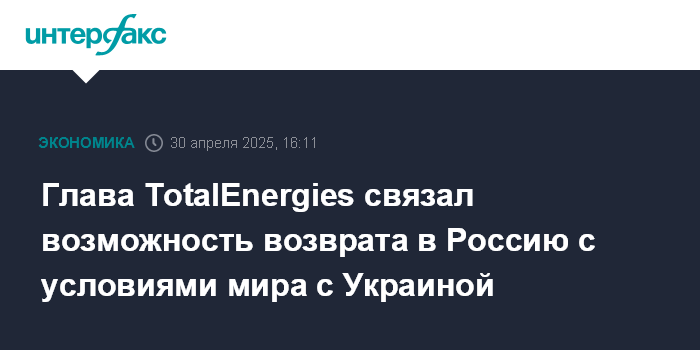 Глава TotalEnergies связал возможность возврата в Россию с условиями мира с Украиной