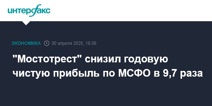 "Мостотрест" снизил годовую чистую прибыль по МСФО в 9,7 раза