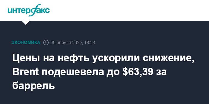 Цены на нефть ускорили снижение, Brent подешевела до $63,39 за баррель