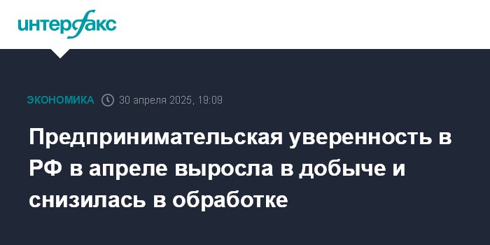 Предпринимательская уверенность в РФ в апреле выросла в добыче и снизилась в обработке