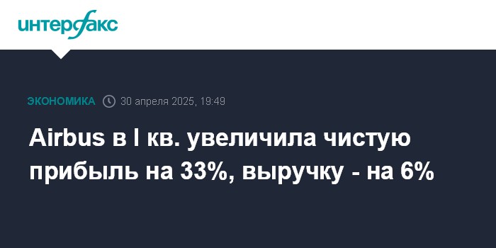 Москва. 30 апреля. INTERFAX.RU - Европейская аэрокосмическая корпорация Airbus SE в первом квартале 2025 года увеличила чистую прибыль на треть, выручку - на 6%.
