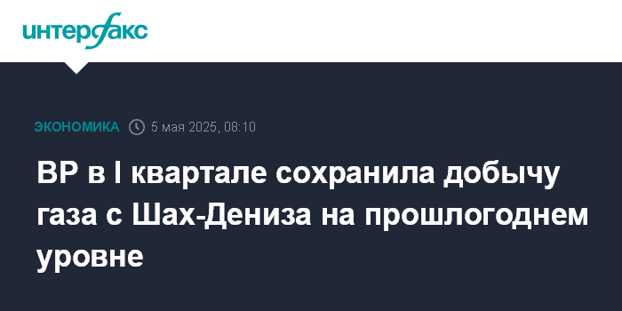 Москва. 5 мая. INTERFAX.RU - BP-Azerbaijan в январе-марте 2025 года добыла с месторождения Шах-Дениз 7 млрд кубометров газа, что соответствует показателю аналогичного периода прошлого года, сообщила компания.