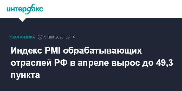 Москва. 5 мая. INTERFAX.RU - Индекс PMI обрабатывающих отраслей РФ в апреле 2025 года составил 49,3 пункта, поднявшись с мартовского значения 48,2 пункта, говорится в материалах исследования S&P Global.