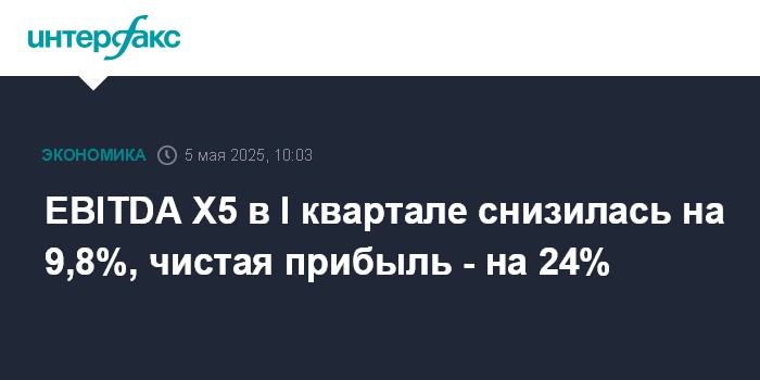 EBITDA X5 в I квартале снизилась на 9,8%, чистая прибыль - на 24%