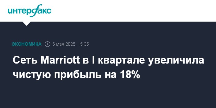 Москва. 6 мая. INTERFAX.RU - Американская Marriott International, оператор крупнейшей в мире гостиничной сети, в первом квартале увеличила чистую прибыль на 18%, выручку - на 5%, сообщается в ее отчетности.