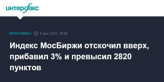 Индекс МосБиржи отскочил вверх, прибавил 3% и превысил 2820 пунктов