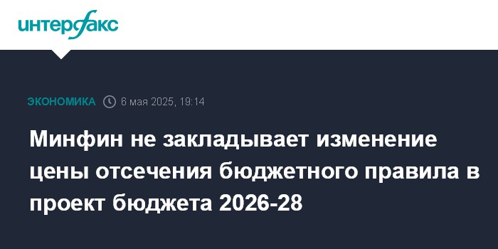 Москва. 6 мая. INTERFAX.RU - Изменение цены отсечения в бюджетном правиле, о необходимости актуализации которой ранее заявлял министр финансов Антон Силуанов, не будет предлагаться при подготовке проекта федерального бюджета на 2026-2028 годы. Об этом глава Минфин заявил на брифинге во вторник.