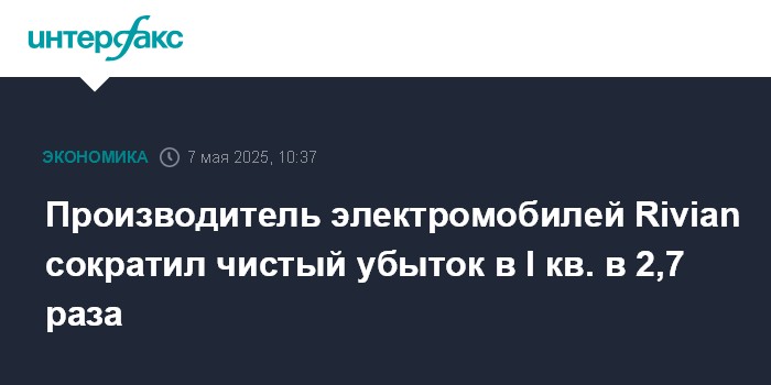Москва. 7 мая. INTERFAX.RU - Американский производитель электромобилей Rivian Automotive Inc. сократил чистый убыток в первом квартале 2025 года в 2,7 раза, увеличив выручку на 3%.