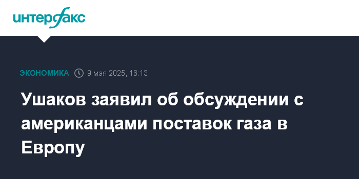 Москва. 9 мая. INTERFAX.RU - Тема возобновления поставок российского газа в Европу обсуждается с американской стороной, сообщил "Интерфаксу" помощник главы российского государства Юрий Ушаков.