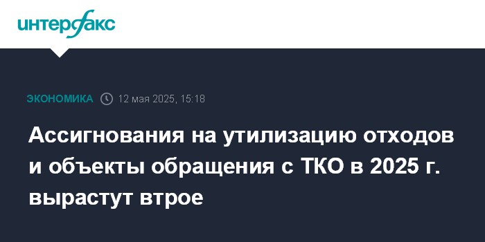 Ассигнования на утилизацию отходов и объекты обращения с ТКО в 2025 г. вырастут втрое