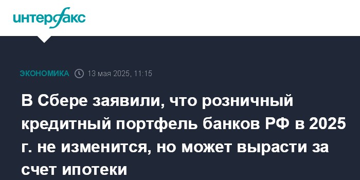 В Сбере заявили, что розничный кредитный портфель банков РФ в 2025 г. не изменится, но может вырасти за счет ипотеки