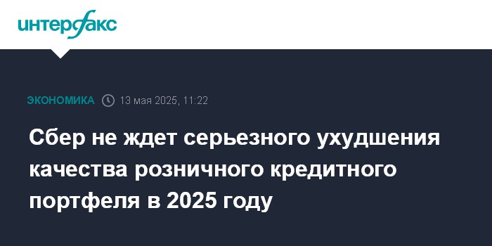 Москва. 13 мая. INTERFAX.RU - Сбербанк не ждет существенного ухудшения качества своего розничного кредитного портфеля в 2025 году, не исключает рост доли проблемных ссуд на фоне погашения части кредитов, сообщил в интервью "Интерфаксу" первый зампред правления Сбербанка Кирилл Царёв.