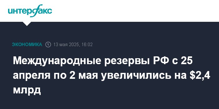 Международные резервы РФ с 25 апреля по 2 мая увеличились на $2,4 млрд
