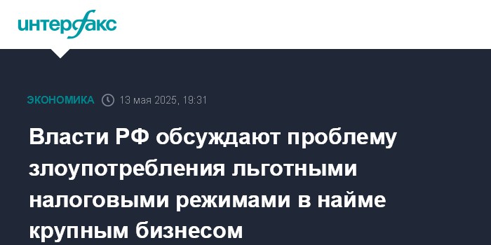 Власти РФ обсуждают проблему злоупотребления льготными налоговыми режимами в найме крупным бизнесом
