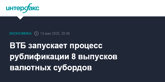 ВТБ запускает процесс рублификации 8 выпусков валютных субордов