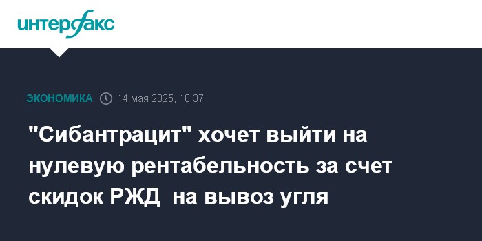 Москва. 14 мая. INTERFAX.RU - Скидка ОАО "РЖД" в размере 12,8% на экспортные перевозки угля в западном и южном направлениях позволит угольщикам выйти на нулевую рентабельность, сообщает сайт группы "Сибантрацит".