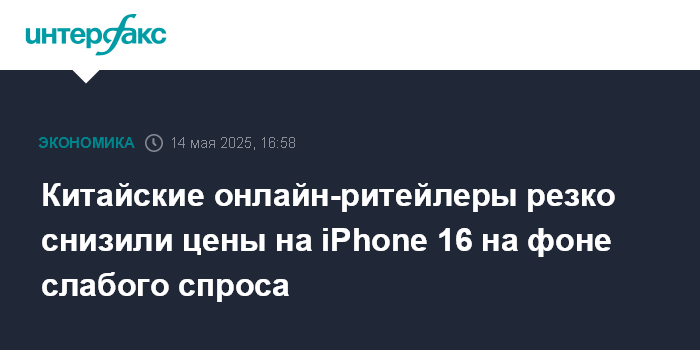 Москва. 14 мая. INTERFAX.RU - Китайские платформы для онлайн-торговли предлагают масштабные скидки на iPhone 16 на фоне слабых продаж этой модели в КНР, пишет MarketWatch.