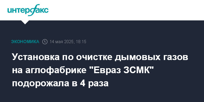 Установка по очистке дымовых газов на аглофабрике "Евраз ЗСМК" подорожала в 4 раза