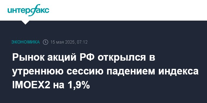 Рынок акций РФ открылся в утреннюю сессию падением индекса IMOEX2 на 1,9%