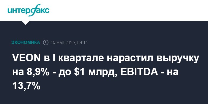 Москва. 15 мая. INTERFAX.RU - Телекоммуникационный холдинг VEON в I квартале 2025 года получил выручку в размере $1,03 млрд, что на 8,9% больше, чем годом ранее, сообщила компания.