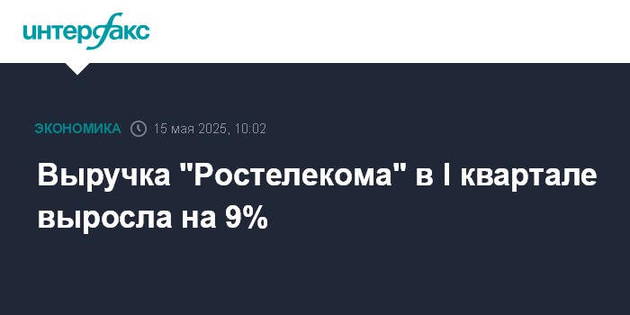 Москва. 15 мая. INTERFAX.RU - Выручка ПАО "Ростелеком" по МСФО в I квартале составила 190,1 млрд рублей, увеличившись на 9% по сравнению с аналогичным периодом 2024 года, говорится в сообщении компании.