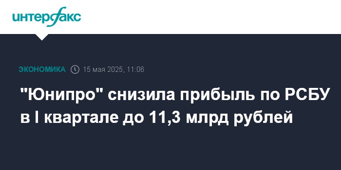 Москва. 15 мая. INTERFAX.RU - Чистая прибыль ПАО "Юнипро" по РСБУ в январе-марте 2025 года составила 11,27 млрд руб. против 12,4 млрд руб. в аналогичный период прошлого года, говорится в отчетности компании.
