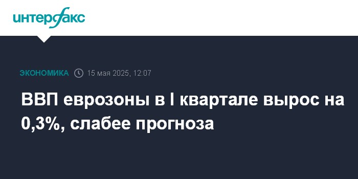 Москва. 15 мая. INTERFAX.RU - Экономика еврозоны в первом квартале 2025 года увеличилась на 0,3% по сравнению с предыдущими тремя месяцами, говорится в отчете статистического управления Европейского союза, представившего пересмотренные данные.