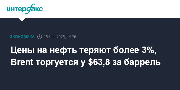 Цены на нефть теряют более 3%, Brent торгуется у $63,8 за баррель