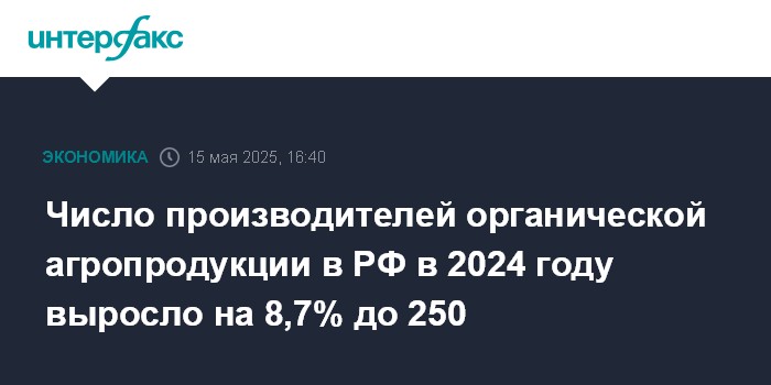 Число производителей органической агропродукции в РФ в 2024 году выросло на 8,7% до 250