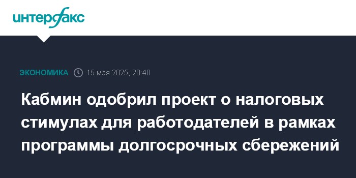 Кабмин одобрил проект о налоговых стимулах для работодателей в рамках программы долгосрочных сбережений