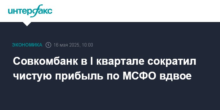 Москва. 16 мая. INTERFAX.RU - Совкомбанк в I квартале 2025 года сократил чистую прибыль по МСФО вдвое – до 12,5 млрд рублей по сравнению с 25 млрд рублей за аналогичный период 2025 года, следует из отчета банка.