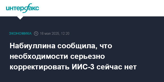 Москва. 16 мая. INTERFAX.RU - Банк России не видит необходимости в существенной модернизации механизма индивидуальных инвестиционных счетов третьего типа (ИИС-3), заявила глава ЦБ Эльвира Набиуллина на конференции НАУФОР "Российский фондовый рынок 2025".