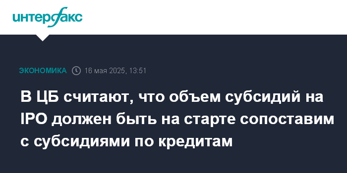 В ЦБ считают, что объем субсидий на IPO должен быть на старте сопоставим с субсидиями по кредитам