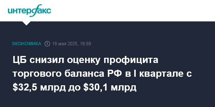 ЦБ снизил оценку профицита торгового баланса РФ в I квартале с $32,5 млрд до $30,1 млрд