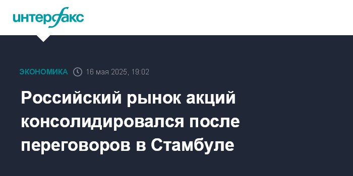 Москва. 16 мая. INTERFAX.RU - Российский рынок акций в пятницу консолидировался при смешанной динамике цен blue chips после известий, что российская и украинская делегации в Стамбуле завершили первый раунд переговоров и намерены продолжить этот процесс; фактором поддержки выступила подорожавшая нефть (фьючерс на Brent превысил $65 за баррель).
