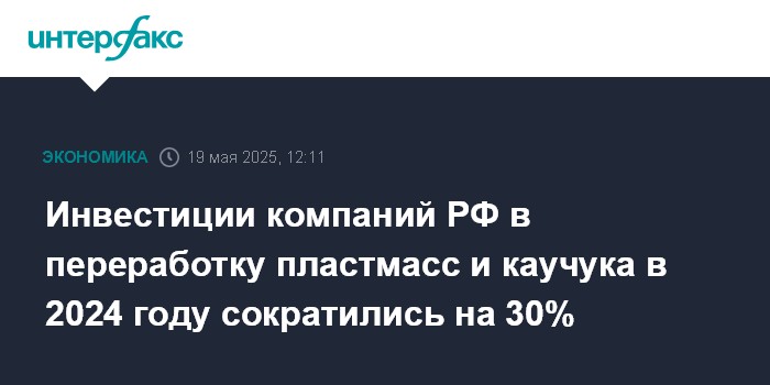 Инвестиции компаний РФ в переработку пластмасс и каучука в 2024 году сократились на 30%