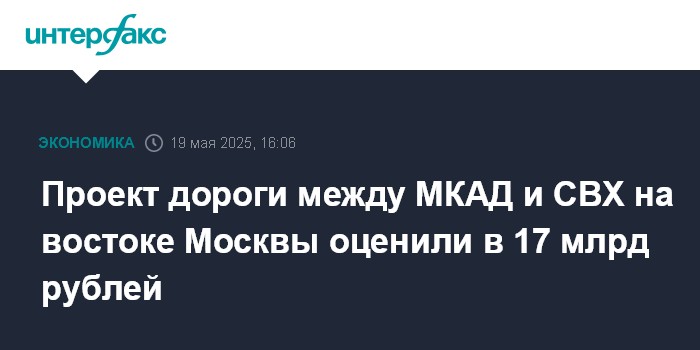 Проект дороги между МКАД и СВХ на востоке Москвы оценили в 17 млрд рублей